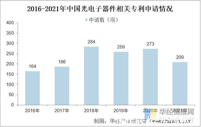 随着我国光电子器件迅速发展,加上国家的大力支持不断,我国光电子器件的研发进程不断加快,各种新技术、新产品相继开发,为我国光电子器件行业的发展提供了技术支持。据资料显示,2021年我国光电子器件相关专利申请数为209项,同比下降23.4%。